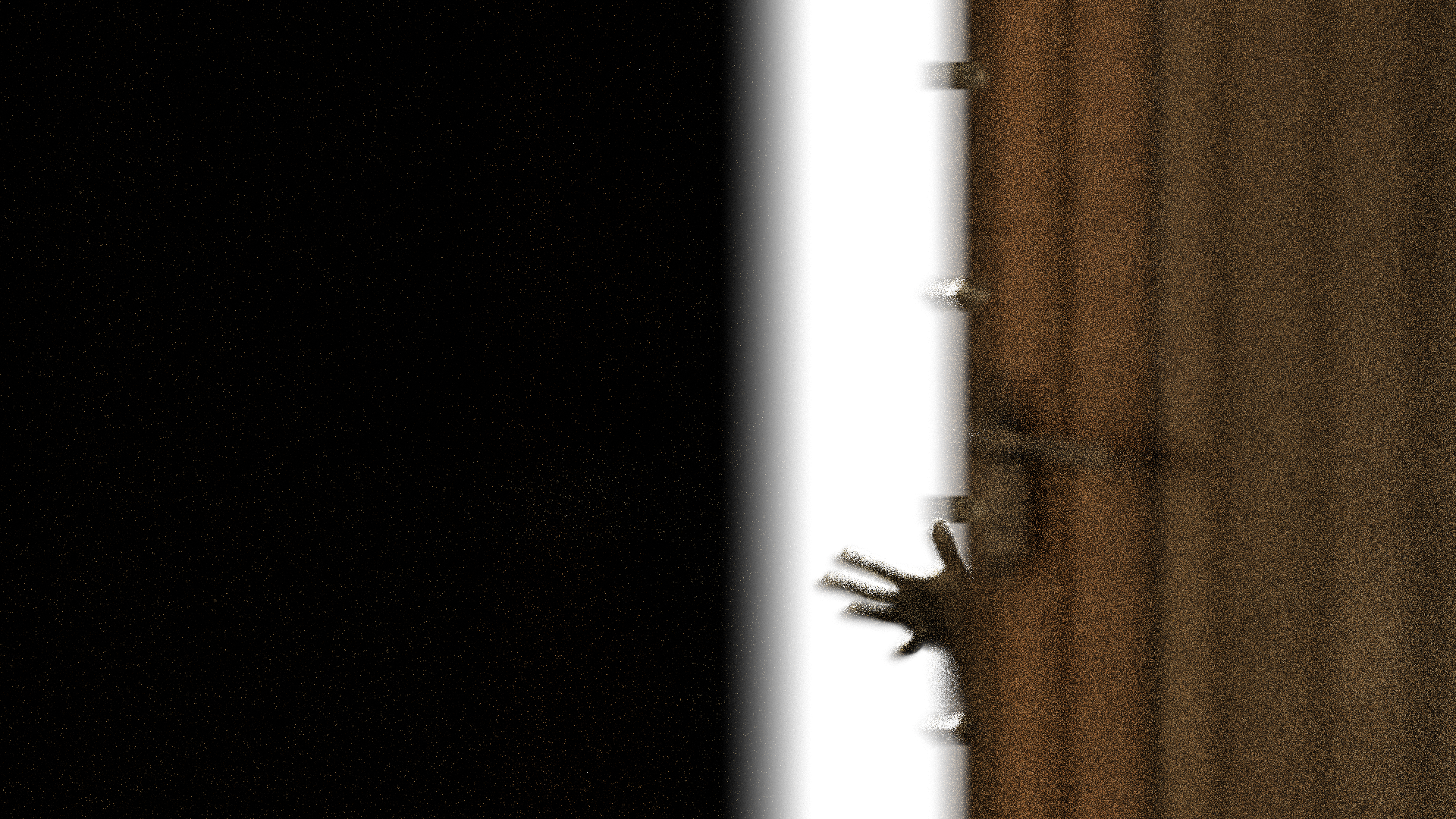 The character is left breathless, and quickly hides, closing the door behind him. In that moment, the image breaks apart again, slowly starting to take shape only to dissolve once more, making it impossible to hold on to that moment of clarity — an intuition, a door briefly thrown open — and fully grasp it.